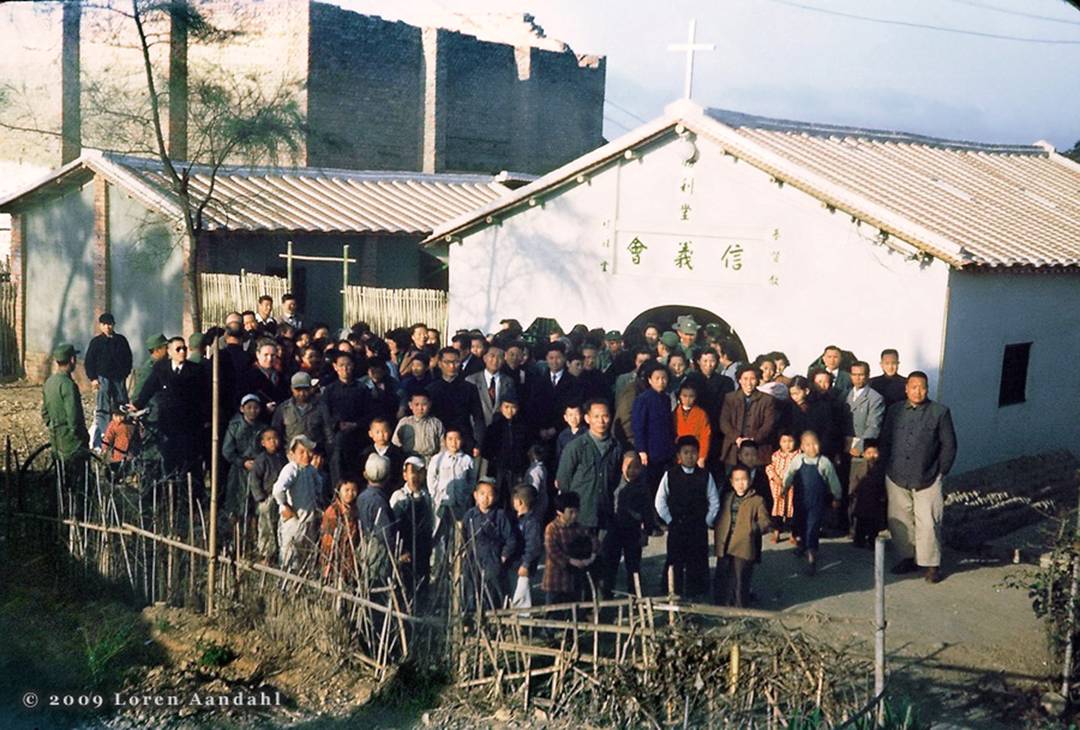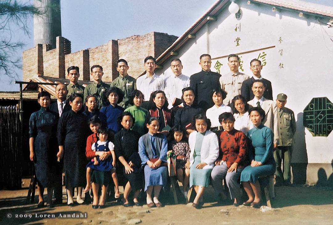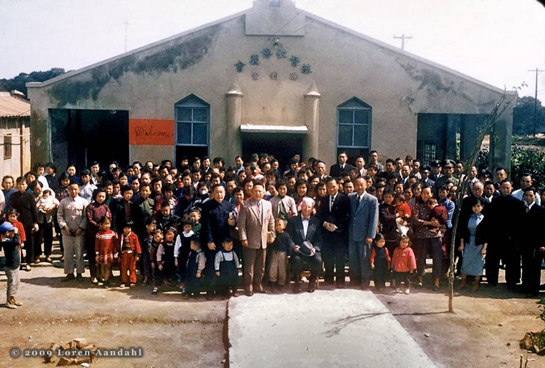 Another photograph of Victory Church from later in 1955 after a new bamboo fence had been built around the church property. This view clearly shows the original moon gate front entrance. One can only imagine how many former patrons of the tea house became regular congregants of the new church.