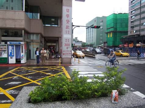 Here is the same corner, same location, same streets. The street running on right side of the street is Hsin Yi Road (in the process of becoming 2nd Blvd) located in the Daan District