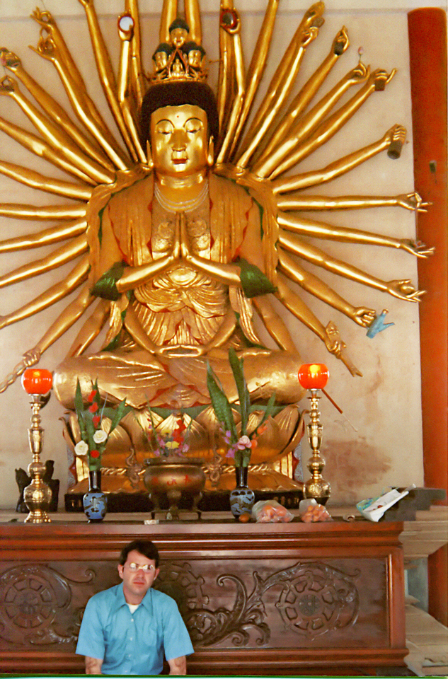 Sergeant Larry Levi who worked at the Tainan Base Post Office visiting a downtown shrine. |