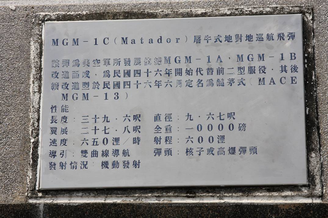 These photographs were taken on 9-20-2008 during an “Open House” at Tainan Air Base Plaque describing the Matador Missile