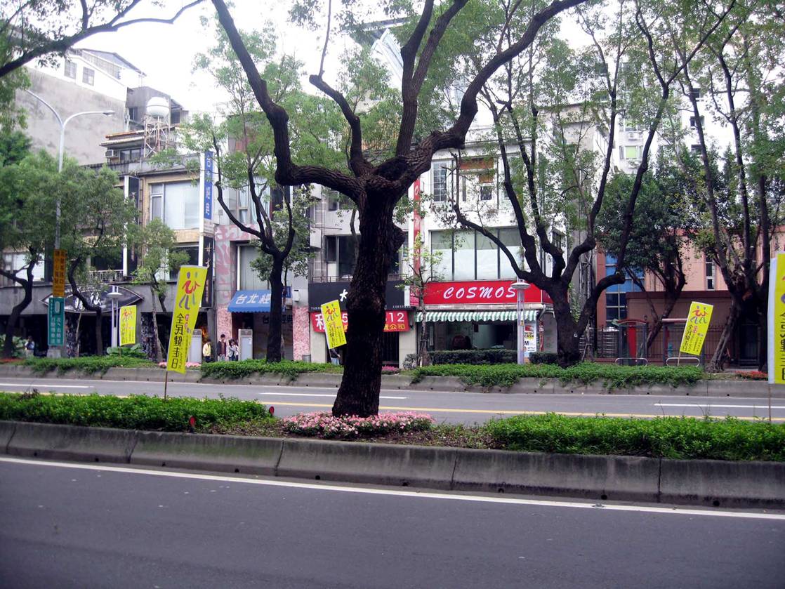 Here are the buildings just after the St. Christopher’s Church, looking toward the old Navy Exchange area. I noticed that there are many business’ that cater to the Filipino community in Taipei. Many stores offering freight service, telephone cards, what have you. In the bottom photo, notice the 7-11 store, the 2 orange and 1 green stripe sign. See next picture to see location of the 7-11, we have arrived at the corner….